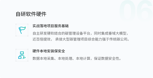 晓数绿景基于AI 2.0时代自研能碳垂域大模型,目前业务场景主要覆盖新能源汽车、光伏、储能等新质生产力企业和绿色园区,提供全生命周期碳管理、碳资产碳交易,以及碳电协同决策管理方案。